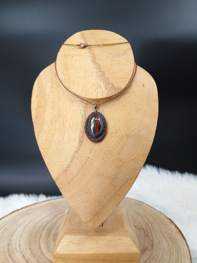 Andarta, pendentif en œil de fer et cuir