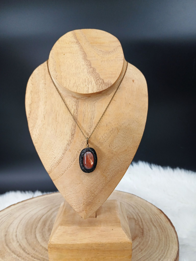 Andraste est un pendentif en cuir et pierre de soleil, fait à la main à la mesure de la pierre et dans le respect de la tradition artisanale et des critères de qualité haut de gamme.
