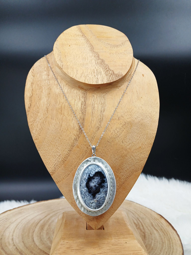 Arduinna, pendentif en agate dendritique et cuir