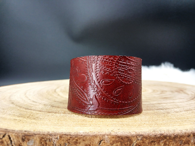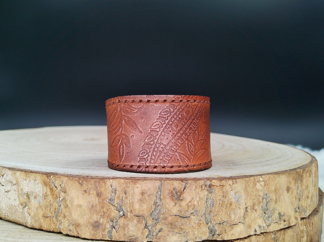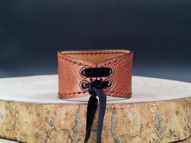 Couture manuelle, finition de tranche en bord franc teinté à la main, œillets posés à la main.