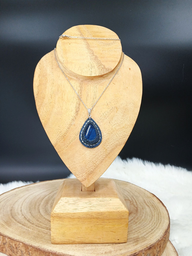 Nótt est un pendentif en cuir et pierre bleue de Leland (ou Leland Blue), fait à la main à la mesure de la pierre et dans le respect de la tradition artisanale et des critères de qualité haut de gamme.