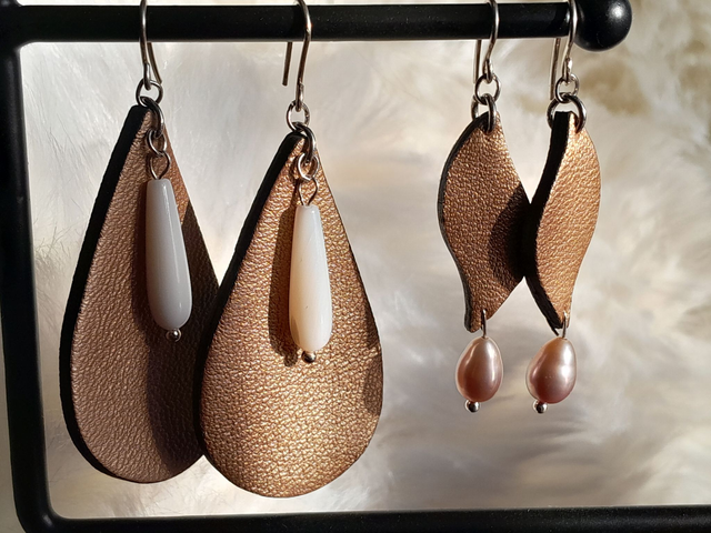 Collection Nyx, boucles d'oreilles en cuir, pierres ou perles naturelles, et argent 925, gold filled, acier inoxydable ou cuivre.
