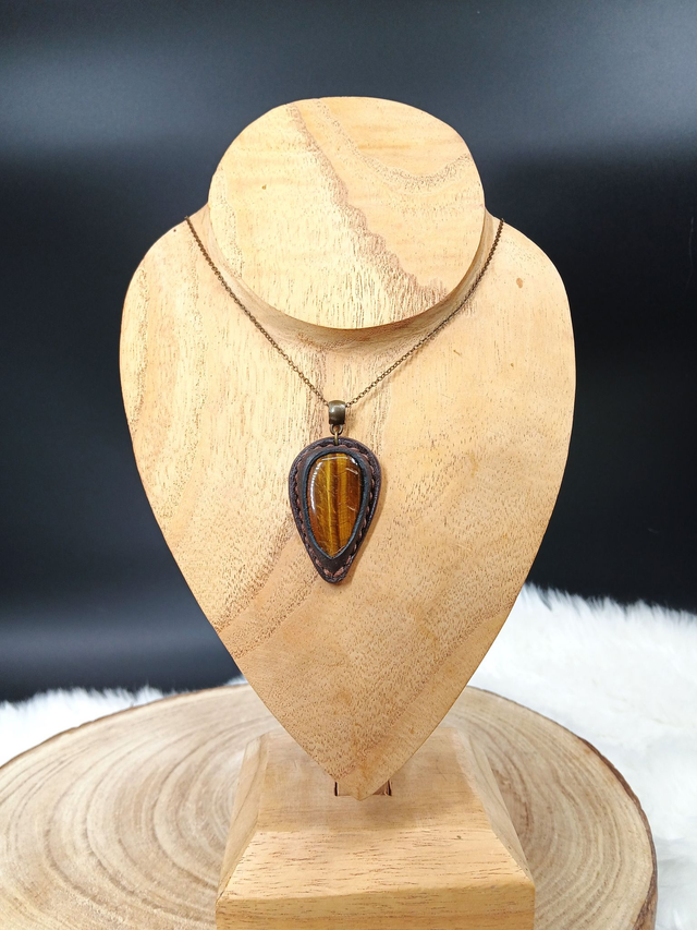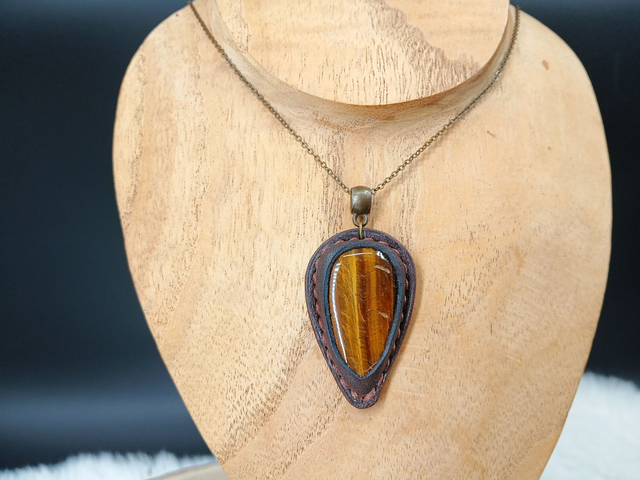 Titée, pendentif en œil de tigre et cuir
